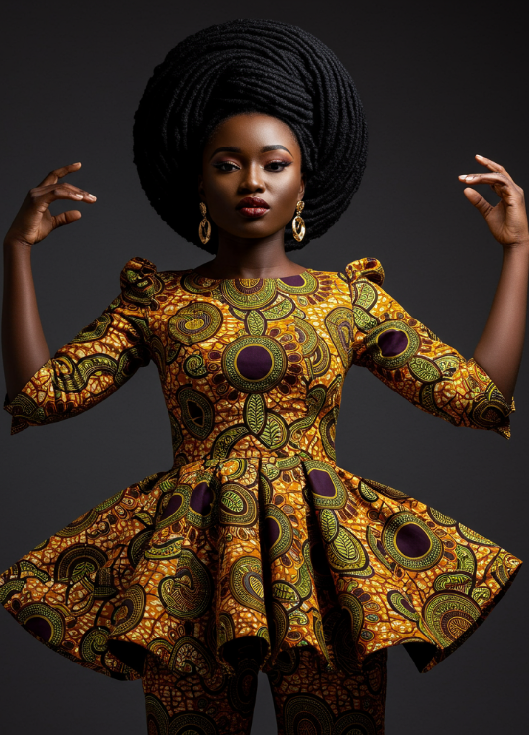Sofia brings a timeless elegance to the runway, embodying the rich heritage of West African textile traditions. Her presence captures the essence of cultural storytelling through fashion.